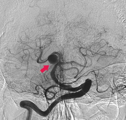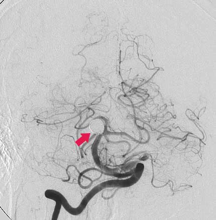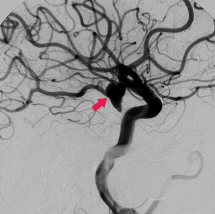 Un aneurisma es un punto débil en la pared de una arteria cerebral que llega a dilatarse como un globo y puede romperse produciendo hemorragia intracraneal.  El aneurisma puede ejercer presión sobre un nervio o el tejido cerebral circundante. Cada episodio hemorrágico conlleva una elevada probabilidad de muerte o de secuelas neurológicas invalidantes.