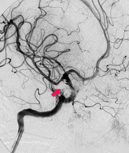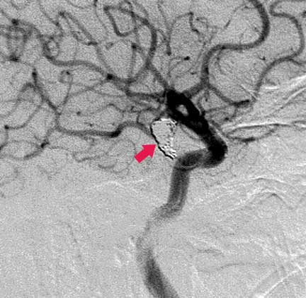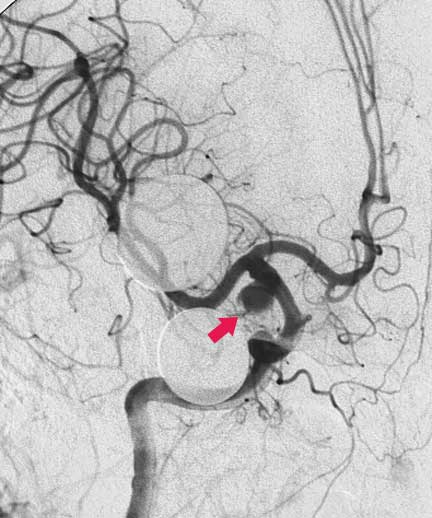 CASO 2 : Embolización endovascular con microespiras (coils) en paciente joven con hemorragia intracraneal y parálisis de nervio oculomotor