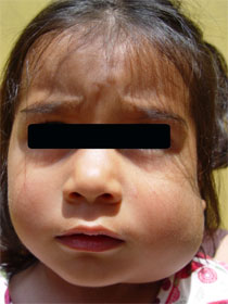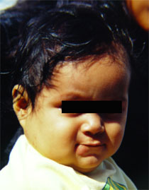CASO 1 : Embolización de Hemangioma de cabeza y cuello. Paciente de 6 meses con lesión voluminosa que abarca desde la oreja al labio. Iba a ser operado con cirugía abierta y se anticipaba una cicatriz deformante.