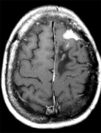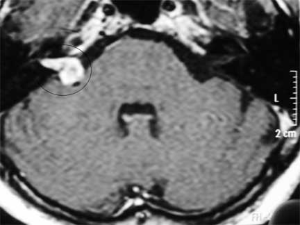 NEURINOMA DEL ACÚSTICO EN PACIENTE DE EDAD AVANZADA CON PÉRDIDA AUDITIVA Y TRASTORNO DEL EQUILIBRIO. EN VISTA DEL ALTO RIESGO PARA CIRUGÍA ABIERTA. SE INDICA RADIOCIRUGÍA Neurinoma del nervio acústico. El neurinoma está inscrito en un círculo. 18 meses después del tratamiento del neurinoma del acústico Tres años después del tratamiento del neurinoma del acústico. Note reducción progresiva del tumor. Paciente con significativa mejoría clínica y neurológicaTratamiento de Meningioma con Radiocirugía Estereotáxica. Paciente había sido operada a craéneo abierto en dos ocasiones, y viene por recurrencia del tumor Resonancia magnética al momento de la radiocirugía Resonancia magnética un año después de la radiocirugía. Note disminución del volumen tumoral Resonancia magnética dos años después de la radiocirugía. Observe marcada y progresiva reducción del meningioma